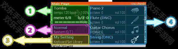 此部分包括四个选项:声音/循环、键盘设置、风格选择和和弦/迷你键盘
